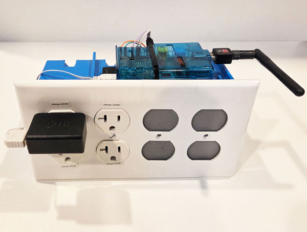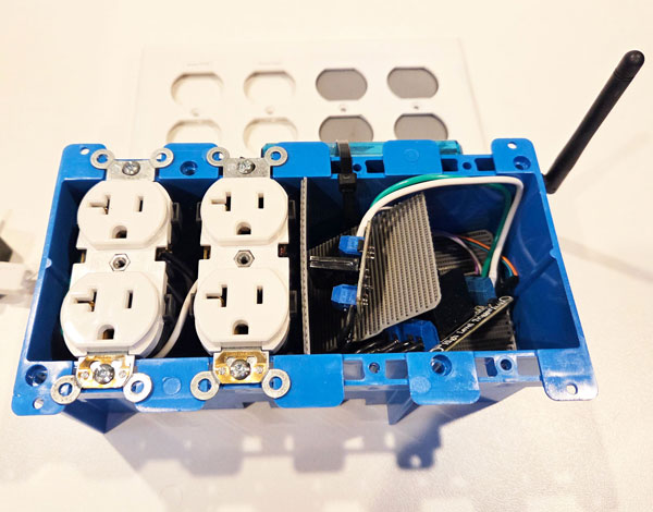 After developing a few Raspberry Pi webservers I decided to create one that would allow control of AC outlets in the house via local WiFi. It runs headless Rasbian with only configuration files and no database requirements. The build was done using a Raspberry Pi, solid state relays (current limited compared to electromechanical), and an AC Wall Outlet Box with room for outlets and wiring. I decided to use solid state relays to control the low power devices/lights and if necessary, electromechanical relays would be required to control higher wattage computers or appliances. In the end I created a few versions of these boxes but stuck to a similar format with the Pi secured to the side and outlets labeled for max wattages. After deploying three panels, the ability to manage two other control panels from each was added, allowing three panels (10+ outlets) to be controlled from one web interface.