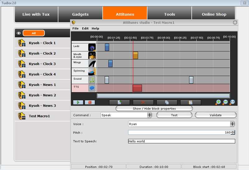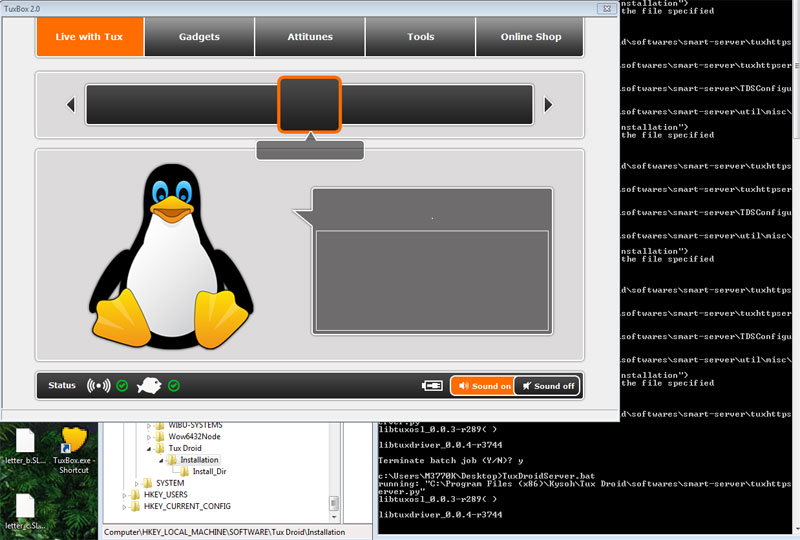 Attitunes were a neat way to control Tux during certain actions. If I came back to this project and was unable to find something more complete, I would aim to reverse engineer more of the network requests to re-route to a local server setup specifically for the Tux Droid.
