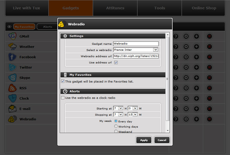 Working Web Radio & Settings pages