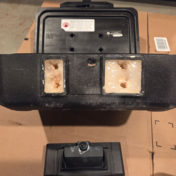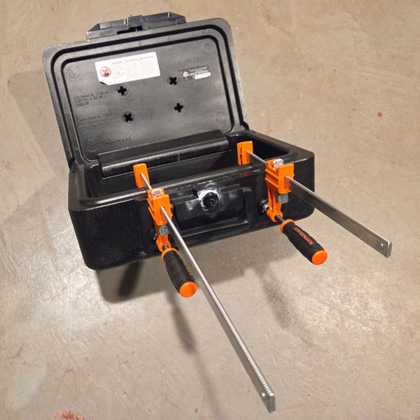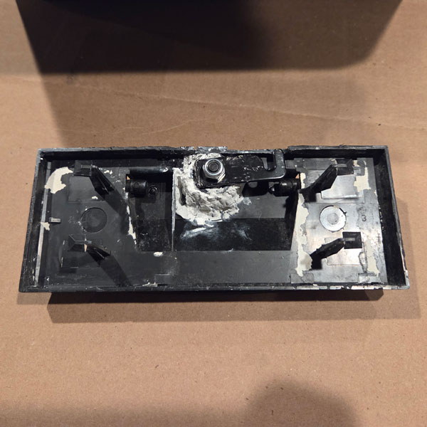 After the new cabinet lock was installed, the lock/handle panel was epoxied back to the body of the safe. The new epoxy bond is much stronger and with the panel being easy to remove prior, I suspect an adhesive similar to superglue was used.